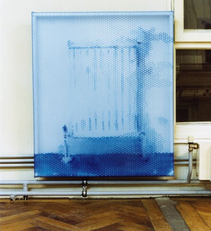 Radiator, enamel paint on bubble wrap, steel frame, 96x81x10, 1999